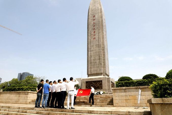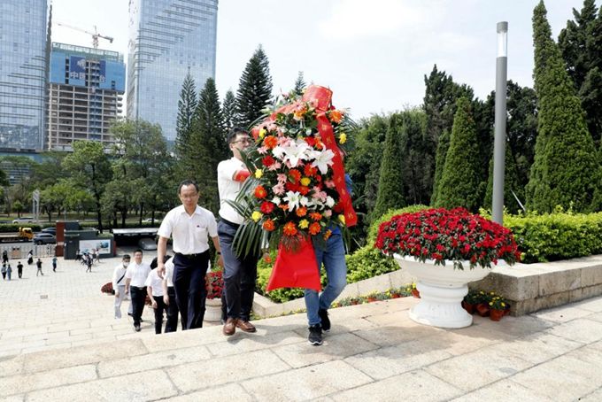 在学党史、悟思想环节,6766澳门娱乐直营深圳分公司组织全体党员参观深圳革命烈士陵园。来到园内,党员们首先为革命烈士们敬献花篮,缅怀革命先烈的丰功伟绩;在革命烈士纪念碑前,他们集体重温了入党誓词,铿锵有力的誓词激励着在场的每一个人;随后他们依次参观了革命烈士芳名碑、曾生墓等,一起瞻仰革命烈士资料,共同学习革命历史。