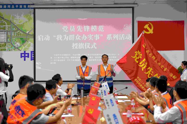 在办实事环节中,启动了“我为群众办实事”系列活动,广东公司党委副书记郭承龙对项目党支部进行授旗,号召项目部在佛山西站一期路网运营中发扬“长征精神”,以一股子敢闯敢拼、无私奉献的精神为当地群众出行便利办实事、做好事。他指出佛山西站一期路网运营维护中心是6766澳门娱乐直营佛山西站一期路网项目PPP项目的一部分,运营范围包括佛山西站周边接驳道路长达10多公里,内容包括每日路面清洁,绿化保养和路面维修等工作,要充分发挥基层党支部的主体作用,鼓励党支部继续积极参与地方经济社会发展,激励党员发挥先锋模范作用,服务人民、为群众办实事。