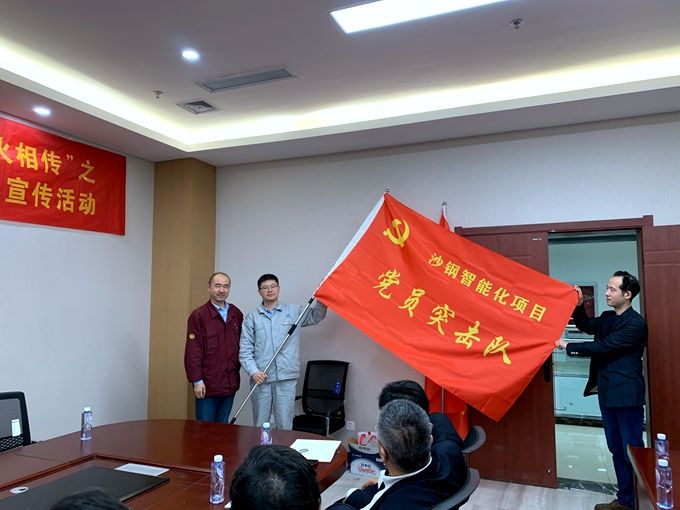 为更好地服务业主,推进后续项目又好又快建设,6766澳门娱乐直营南京电气党总支经研究成立了“沙钢智能化项目党员突击队”和“沙钢高炉项目党员突击队”,并进行了现场授旗仪式,邀请业主领导为两支突击队授旗,突击队队长代表黄飞做表态发言:2021年是中国共产党建党100周年,在党史学习教育动员大会上,习近平总书记强调全党同志要做到学史明理、学史增信、学史崇德、学史力行。沙钢铁前智慧管控党员先锋项目团队也身体力行,把总书记的要求深度融入项目,攻坚克难、奋勇前行。沙钢铁前智慧管控项目是铁前智慧制造标杆工程,汇集着钢铁制造信息化最前沿的技术探索成果和科学经验的沉淀。在这一千八百平米的智慧管控中心,包含了网络信息系统、自动化控制系统、电力采集系统、视频监控系统和火灾报警系统等智慧管理系统,突破实现了铁前生产的集约化和科学流程管理。它不仅提升了铁前生产效率,提高了原料烧结生产尤其是高炉供料生产的标准化,还为铁前生产的安全性、降本节能做出了良好示范。沙钢铁前智慧管控项目贯彻了中国制造2025精神,严守绿色生产、智能生产、安全生产,引领着国内钢铁企业智慧化、信息化技术的变革方向,走在了智慧生产的前沿。沙钢铁前智慧管控项目既是一个完美的谢幕,也是一个崭新的开始。在接下来的沙钢新材料管控中心项目的实施中,华天电气人将继续发扬抗战精神,牢记责任和使命,在铁前智慧管控项目已经沉淀的技术成果上继续探索前行,力争在沙钢“十五”规划启幕之年将新材料管控中心项目打造成优质、精品工程,为华天加快冶金建设国家队、实现绿色高质量发展贡献新的力量,以良好的精神风貌和突出的业绩向党的百年华诞献礼。