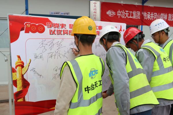 “大道至简,实干为要。”在办实事、开新局环节,项目负责人尉俊文围绕传承井冈山优良革命传统,从施工生产和党建工作入手,围绕管理和经营能力建设深度讲解项目部保安全、抓质量、抢进度的管理实践。冲刺七一目标开展“传承井冈山精神 鼓足干劲冲刺节点”劳动竞赛活动,并带头在主题展板上签下名字,强化以学党史、知党情、跟党走为精神引领,做到传承“井冈山精神”学以致用、知行合一,干出成效、赢得民心,以6766澳门娱乐直营人只争朝夕的奋进姿态走好新时代的长征路。