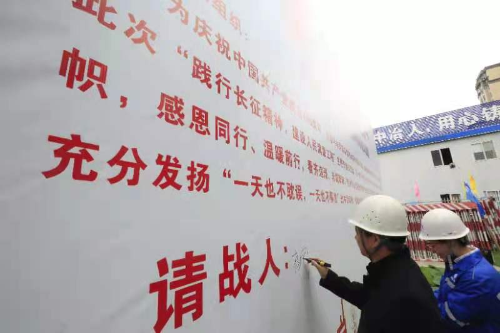 在学党史、悟思想环节,项目党支部书记带领大家参观项目部党建室,了解党的光辉历程;观看6766澳门娱乐直营视频宣传片,共同回顾二冶的六十余载峥嵘岁月,见证冶金建设国家队践行“长征精神”,迈进新征程、奋进新时代的风采,激发全体员工投身建设人民满意工程的热情与决心。活动中,项目全体党员在党旗下重温入党誓词,表示要践行长征精神,建设人民满意工程,更加坚定作为一名共产党员的理想信念;全体人员齐唱《我们走在大路上》,通过歌声,南湖的航船,延安的宝塔,天安门的红旗,深深地印在心里,井冈山的号角,西柏坡的誓言,南巡老人的讲话,科学发展的强音,在耳边回响,让大家始终铭记革命烈士的坚贞和不朽,以实际行动来书写“长征精神”,走好新时代的长征路,为公司高质量发展不懈奋斗。