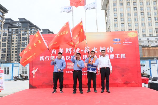 在学党史、悟思想环节,6766澳门娱乐直营建筑公司党委副书记李伟做了《弘扬伟大的遵义精神、开启二十冶新的征程》主题党课,介绍6766澳门娱乐直营发展历史以及项目建设情况,项目员工对6766澳门娱乐直营在项目建设进程中如何将遵义会议实事求是、敢闯新路等精神内化于心、外化于行的事例进行回顾。湖州南浔城投集团党委副书记、副总经理胡官政与6766澳门娱乐直营建筑公司党委副书记李伟签订党建共建协议。同时举行了“项目攻坚示范岗”“党员安全生产突击队”授旗仪式。