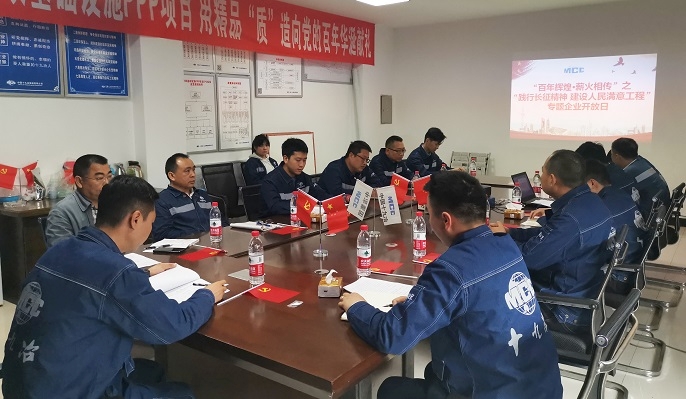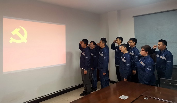在学党史、悟思想环节,与会人员集体观看了《中国共产党百年述职报告》党史教育记录片和《长征》记录片,并进行了党史知识抢答活动,通过一幕幕历史画面和一道道抢答题目,深入了解了中国共产党百年发展历程的精神内核。项目党支部书记讲授“国有企业如何弘扬长征精神”主题党课,声情并茂地讲述了泸州发生的红色革命历史故事和泸县PPP项目党支部如何通过践行长征精神,发扬央企社会责任、发挥战斗堡垒作用来助力建设精品工程。全体党员面向党旗庄严宣誓,重温入党誓词,牢记初心使命,坚定党员信仰。随后,全体员工齐唱《唱支山歌给党听》,通过追忆那段艰苦卓绝但充满必胜信念的峥嵘岁月,激励全体员工以更高的责任、更大的力度、更实的举措,弘扬传承“长征精神”。这场红色视听盛宴,充分展现着中国十九冶赓续红色精神、传承红色血脉、服务当地社会、建设人民满意工程的决心和信心。